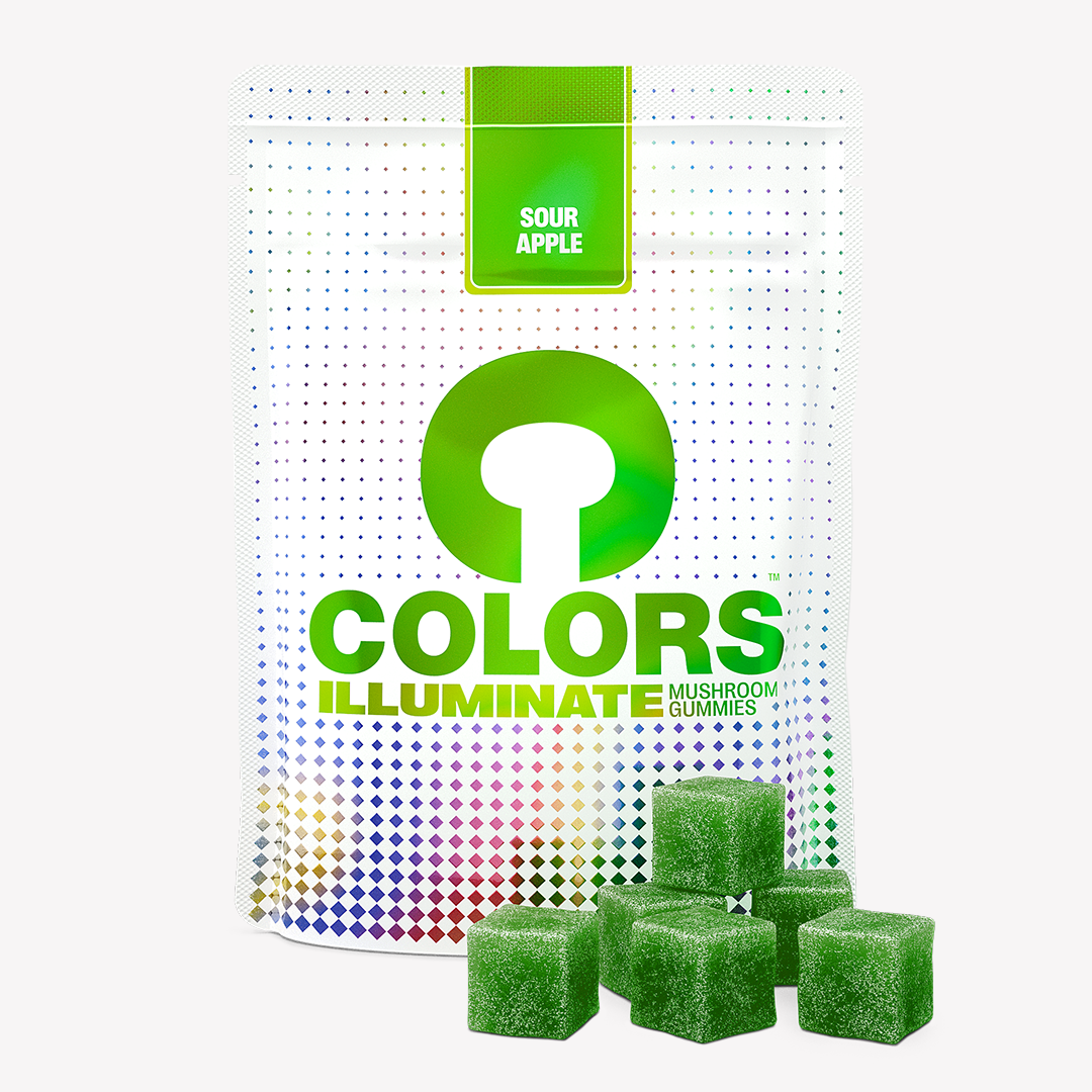 Introducing COLORS Sour Apple Illuminate Mushroom Gummies – the perfect companion for your social adventures. Designed to enhance your social experiences, Illuminate Gummies help you feel energized, connected, and ready to elevate any experience. Whether you’re at a party, a casual get-together, or simply enjoying time with friends, these gummies ensure vibrant, enjoyable interactions.